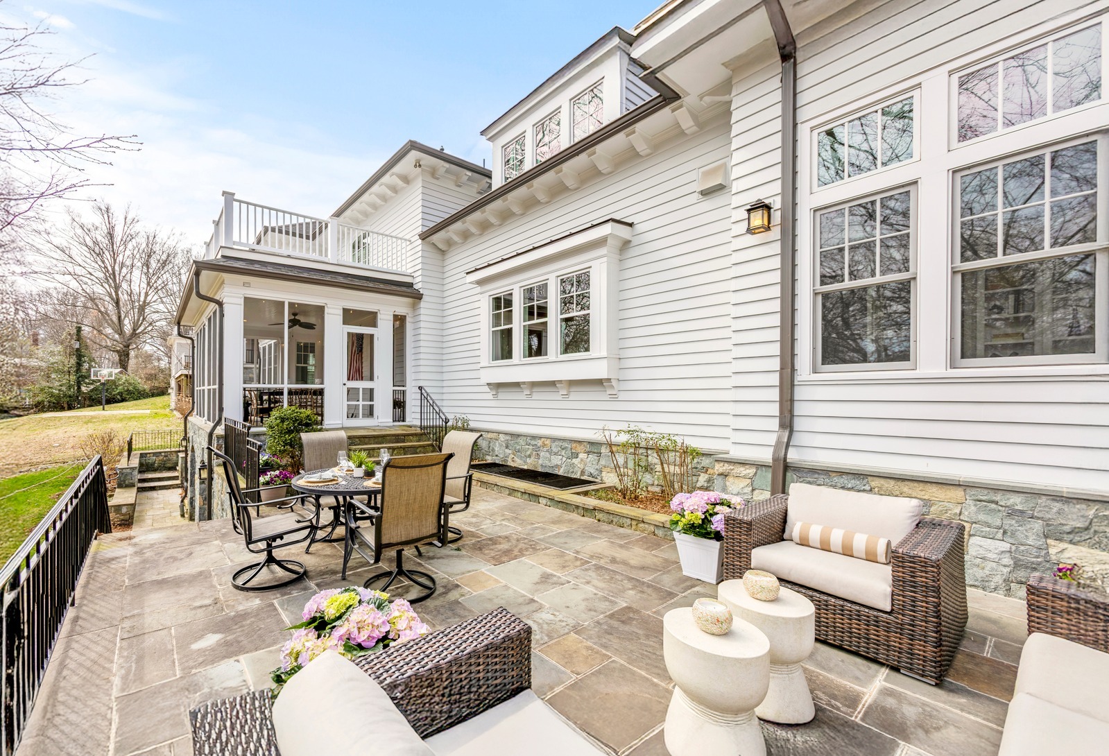 Welcome to a once-in-a-lifetime opportunity to own a truly spectacular residence designed by the renowned GTM Architects and masterfully built in 2014 by award-winning PKK Builders (Patrick K. Keating). Perfectly sited on an extraordinary premium 27,000+ square-foot lot in the heart of the Town of Chevy Chase, this remarkable home offers breathtaking panoramic views of the surrounding neighborhood, exceptional privacy, and a rare sense of tranquility in one of the area’s most coveted locations. Thoughtfully designed to celebrate the beauty of every season, the home showcases multiple outdoor living spaces that seamlessly blend elegance and comfort. The owner’s private balcony provides a peaceful retreat for morning coffee, quiet reflection, or stargazing on clear evenings, while the screened-in porch invites relaxed gatherings throughout the year. An adjacent stone terrace with grilling area and a covered lower-level stone porch create ideal settings for entertaining, outdoor dining, and enjoying the expansive, beautifully landscaped grounds. Every outdoor space has been carefully curated to offer both intimacy and grandeur. This exceptional residence offers approximately 6,900 square feet of refined living space across three levels, highlighting the superb craftsmanship and meticulous attention to detail that define PKK Builders. Anchored by striking Carderock stonework that gracefully wraps the exterior, the home presents a timeless architectural presence and enduring quality that is both elegant and inviting. Ideally located just a scenic stroll from the very best of Bethesda, the home provides effortless access to the Washington Metro Bethesda Red Line station, the Capital Crescent Trail, Lawton Community Center, and Elm Street Park. Residents enjoy world-class dining, boutique shopping, entertainment, and premier fitness destinations, all connected by pedestrian-friendly streets and walkable green spaces. Experience the charm and amenities of the Town of Chevy Chase and its highly sought-after close-in lifestyle. With seamless access to downtown Washington, DC, the Capital Beltway, Interstate 95, and three major airports, this extraordinary residence offers the perfect balance of luxury, accessibility, and distinction. This is a home that will captivate the most discerning buyer and stand as a timeless legacy property for generations to come.